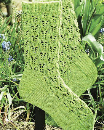 Shown in Spring Green, these lacy leaf socks could be made to match any season.