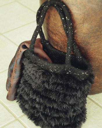 Yarn Requirements: 765 yards (700m) of worsted weight wool that will felt easily and 130 yards (119m)of an extra-thick, eyelash type novelty yarn.