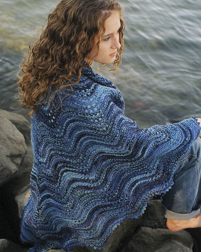 Like waves in shallow water, Old Shale lace creates ripples across this simple, garter stitch lace shawl.